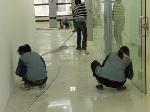 料點等。用毛巾清潔衛生間的潔具,用不銹鋼清洗液針對各種龍頭、管件進行清潔。用洗地機對地面進行最后的
